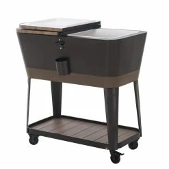 80 Qt. Iron Beverage Wheeled Cooler with Shelf by Winado