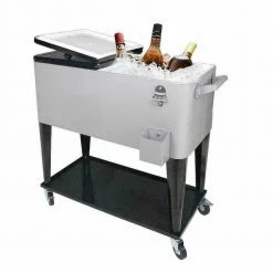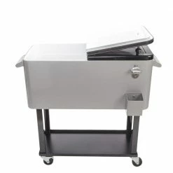 Are you looking for a high-quality cooler, This 80 qt. Iron Spray Cooler with Shelf is highly recommended to you, Adopting high-quality iron spray material, it features stable, sturdy, durable and environment friendly. Besides, it has 2 directional wheels, so you can stop at any time. It also features bottom tray design, convenient to carry things. What’s important, it has warm and cooling functions. It can keep the warm food above 40, for 4-hours to 5-hours and preserve cool for up to 48-hours with ice sheet. So what are you waiting for, Don’t hesitate, it’s worth buying.