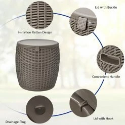 Our 12-gallon ice cooler is ideal for outdoor patio party or family picnic use. It can maintain your drinks fresh and cool for several hours when it is filled with ice as an ice cooler. Featuring 4 in 1 design, it can also work as a cocktail side table, a storage box or a stool, perfectly meeting your different needs. The lid with buckle and hook contributes to your convenient use. And it is easy for you to move and carry with handles on both sides. Besides, the drain at the bottom makes easy water draining and the drain plug design makes it easy to clean, which greatly saves your efforts. If you like it, don’t hesitate to buy one!
