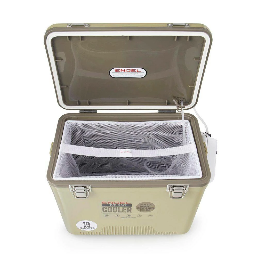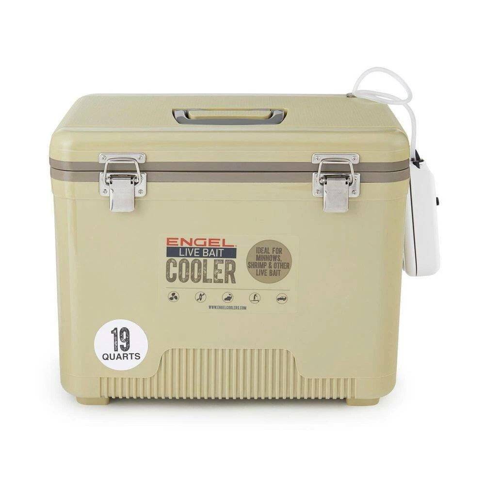 There are a lot of insulated coolers that promise to keep your drinks cold for days. This 2-pack of the Engel Insulated Live Bait Fishing Drybox Cooler is no different. Except for the fact that it is can also of a whole lot more. This 3-in-1 molded Polystyrene Foam insulated cooler is fit with an attachable water pump to bubble water to a comfortable temperature for live bait. And the leak-proof, airtight fishing bait container has an efficient pull net to simply remove live minnows or shrimp. Connect the pump into a car or boat cigarette lighter to keep water moving overnight to preserve bait for the next day’s fishing adventure. After the catch, drain the water to utilize the stain and odor resistant dry box to keep moisture away from your valuables or fill it with ice and up to 32 12 oz. cans for a more enjoyable afternoon. This versatile bait box can be used to house cold drinks, hold your trophy catch, or keep your phone and wallet in a safe place. From an ice fishing tent to the open ocean, the Live Bait Cooler from Engel is the essential dry box for every outdoor adventure. (2-Pack).
