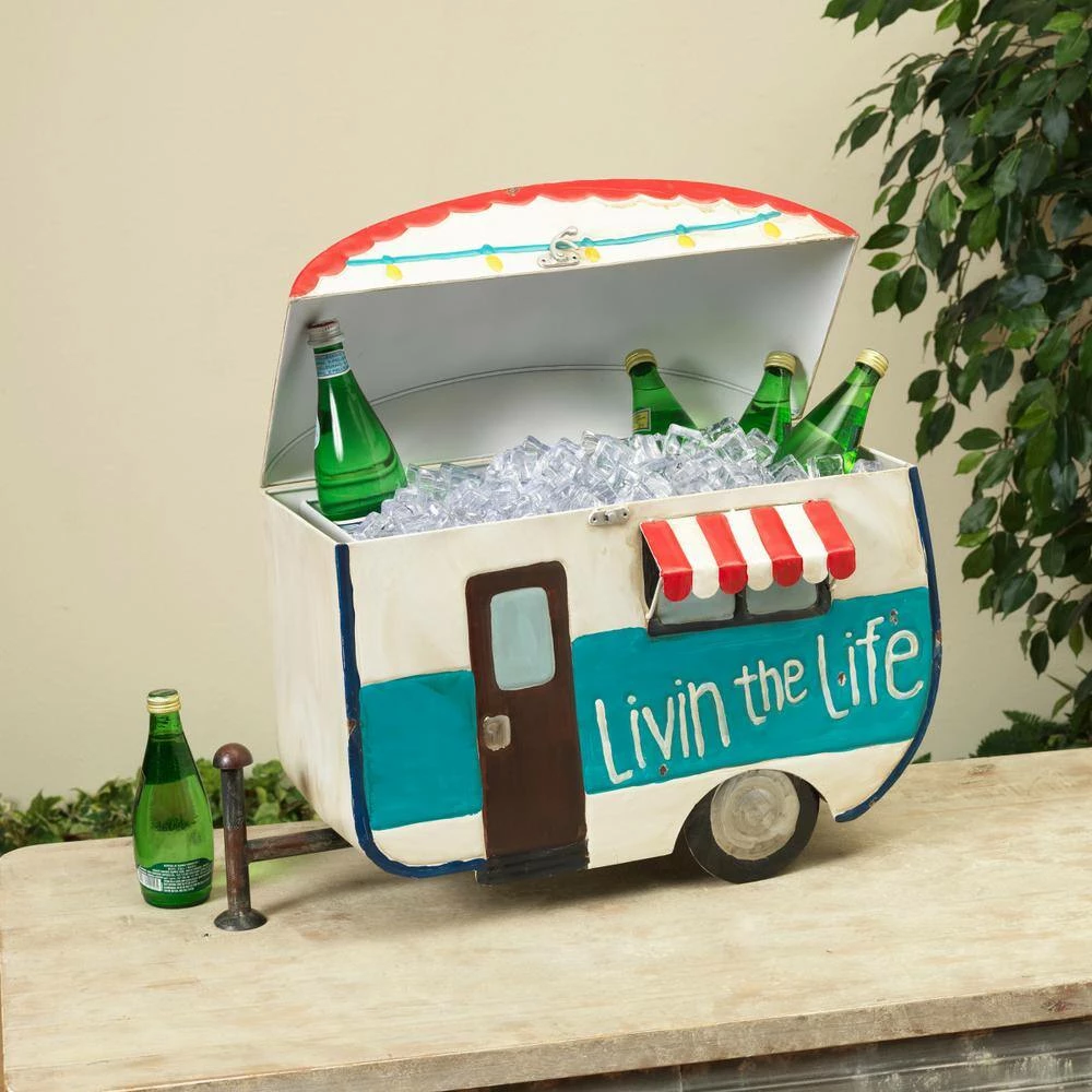 Fun and functional at its finest. This ice chest will work great at picnics, BBQ and any function needing a place to keep your drinks cold. This chest is lined to work correctly as an ice chest. Bring a little nostalgia to your outdoor events with this camper chest.