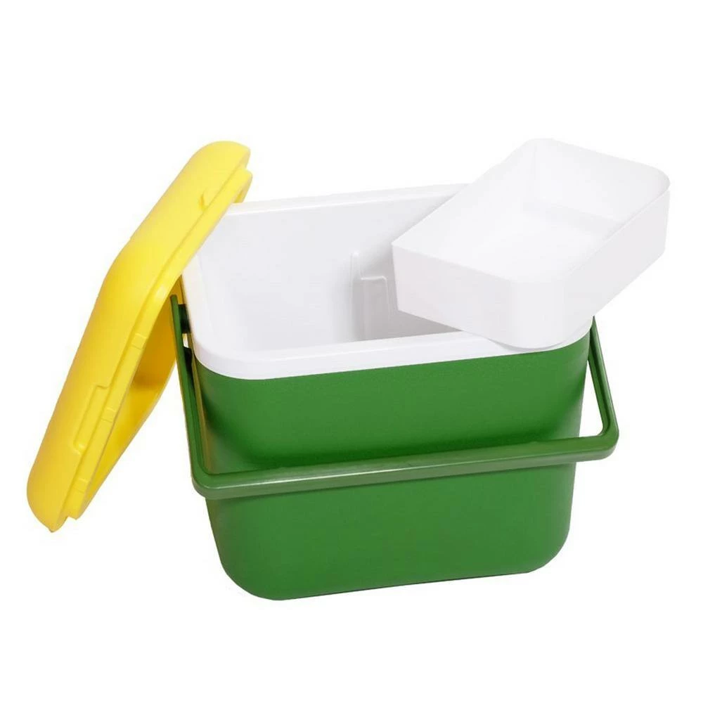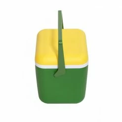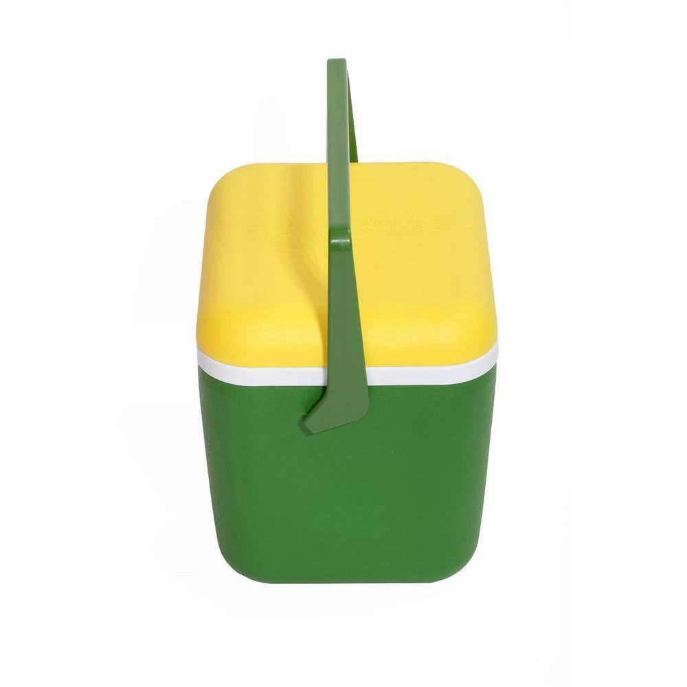 Worlds first Magneric cooler. This Green and Yellow cooler holds 20 cans and comes with a removable tray. Can be used on any metal surface. We also have a metal plate accessory with suction cups to accommodate this cooler on plastic, glass, fiberglass etc. Great for camping, fishing,as well as a personal lunch cooler.Great for the construction worker. no more tie downs needed.Magnetid 20 can personal cooler