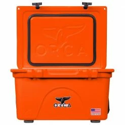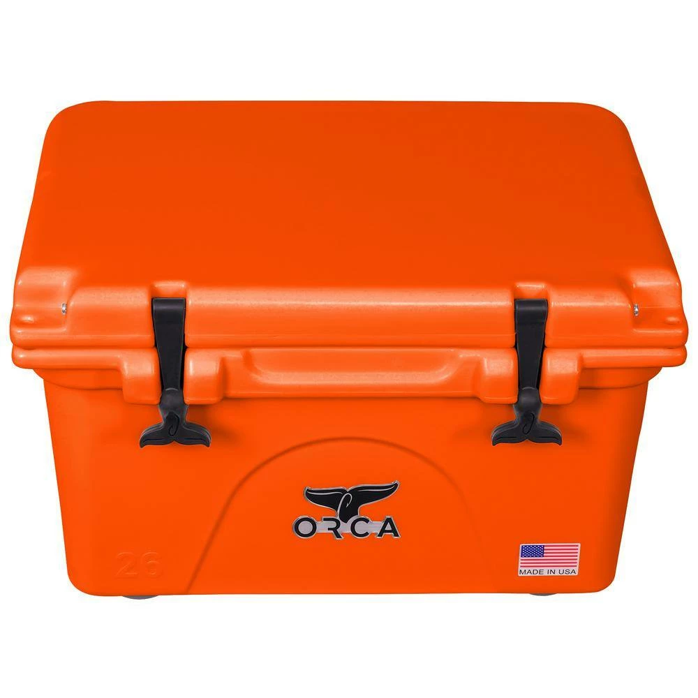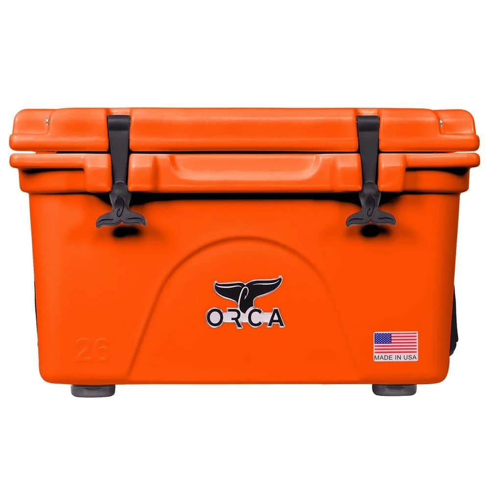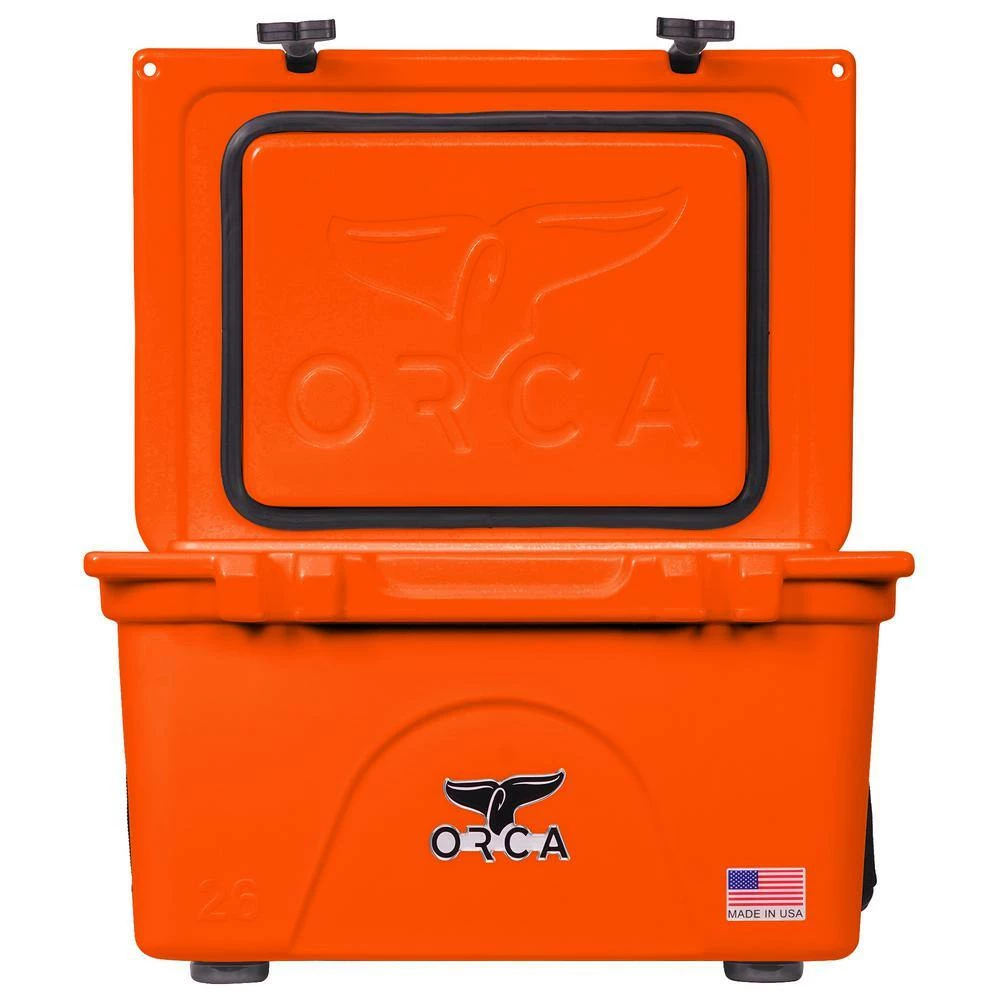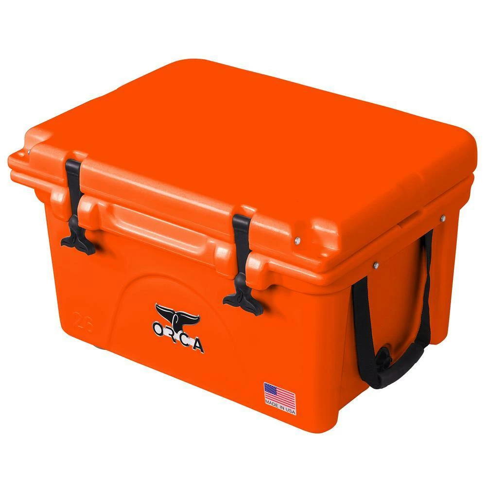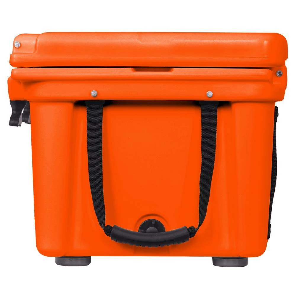 This Blaze Orange 26 qt. cooler is highly durable as it is roto-molded. The 26 qt. cooler will hold ice and keep perishables cold for up to 10-days. The cooler will hold up to 24-cans or 18-bottles laying down.
