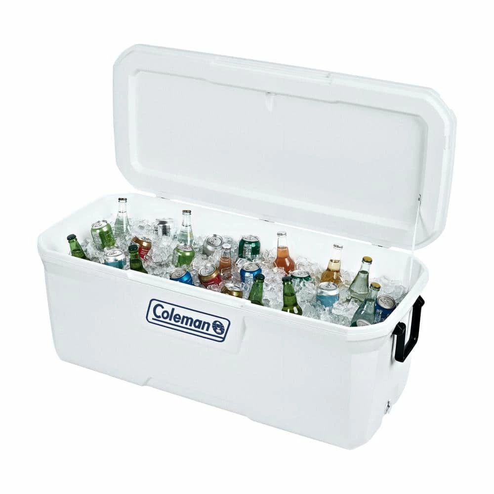 Food and drinks stay chilled longer with the Coleman 15Qt Hard Cooler, 45 in, Blue Nights, which Keeps the Ice up to 6 days. Carrying a full load? Enjoy easier lifting with the swing-up side handles, then have a seat on the closed lid. Not to worry, cup holders built into the lid will keep your drink close and prevent spills. With room to fit up to 223 cans, go ahead, invite more friends and family to barbecues, tailgate parties, or camping trips.