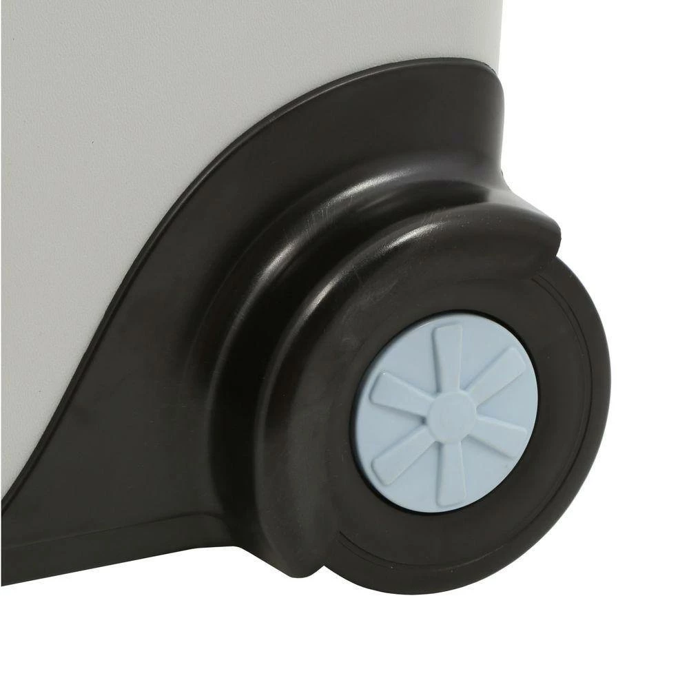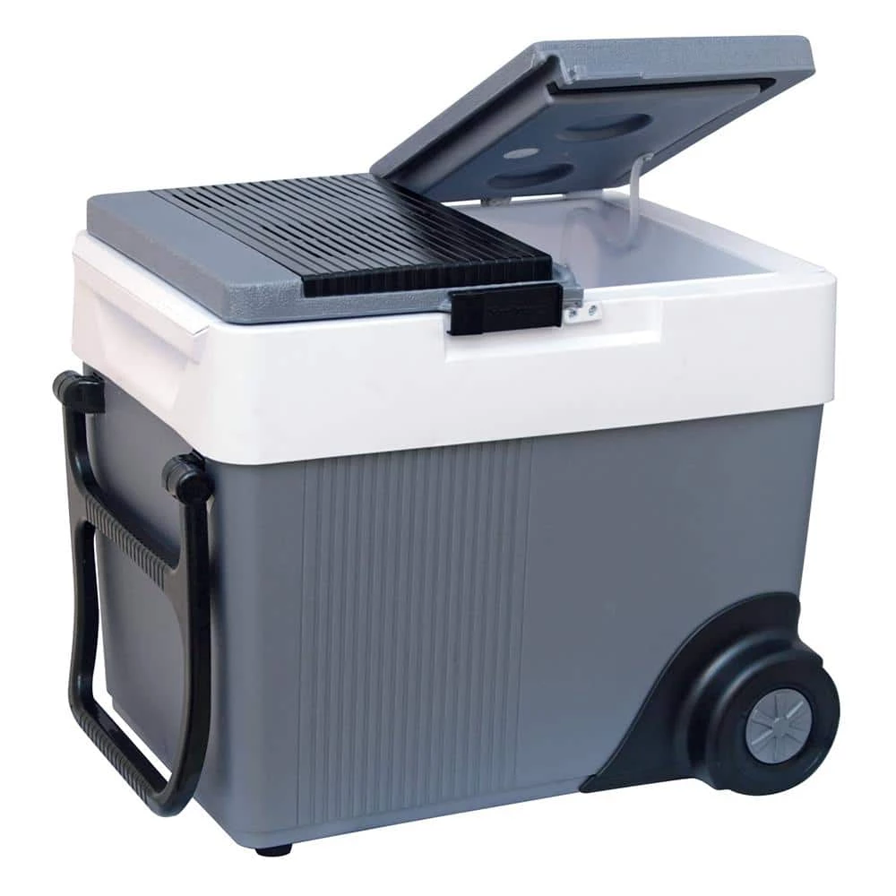 Portable cooling without any ice. No ice? No problem! The Koolatron W65 Kargo Cooler with Wheels offers the perfect blend of functionality and portability. No matter where the road takes you, a cold drink or snack will always be within arm’s reach. The W65 Kargo Kooler with Wheels plugs into any 12 volt plug and delivers the cooling power of a 10 pound block of ice through a thermoelectric module the size of a matchbook. Once you use it, you won’t want to leave home without it! This thermoelectric travel cooler features a 33 quart (31L) capacity. The hard-sided design and built-in wheels and handle make this cooler easy to transport. No heavy lifting required. Pack your Koolatron cooler full of your favourite snacks and drinks, and use the pull handle and wheels to wheel it to your campsite or sports event. Koolatron 12 V electric coolers are ideal for travel. Just plug your thermoelectric cooler into the 12 volt plug in your car, truck, SUV, boat or RV. Our coolers draw less power than your car’s parking light and don’t require you to stock up on any ice. This travel cooler will cool contents to 40F (22 C) below the surrounding temperature. You can also use it in warming mode to keep content warm to 159F (60C).