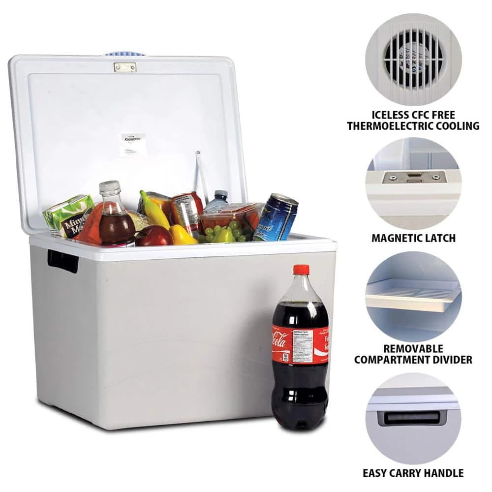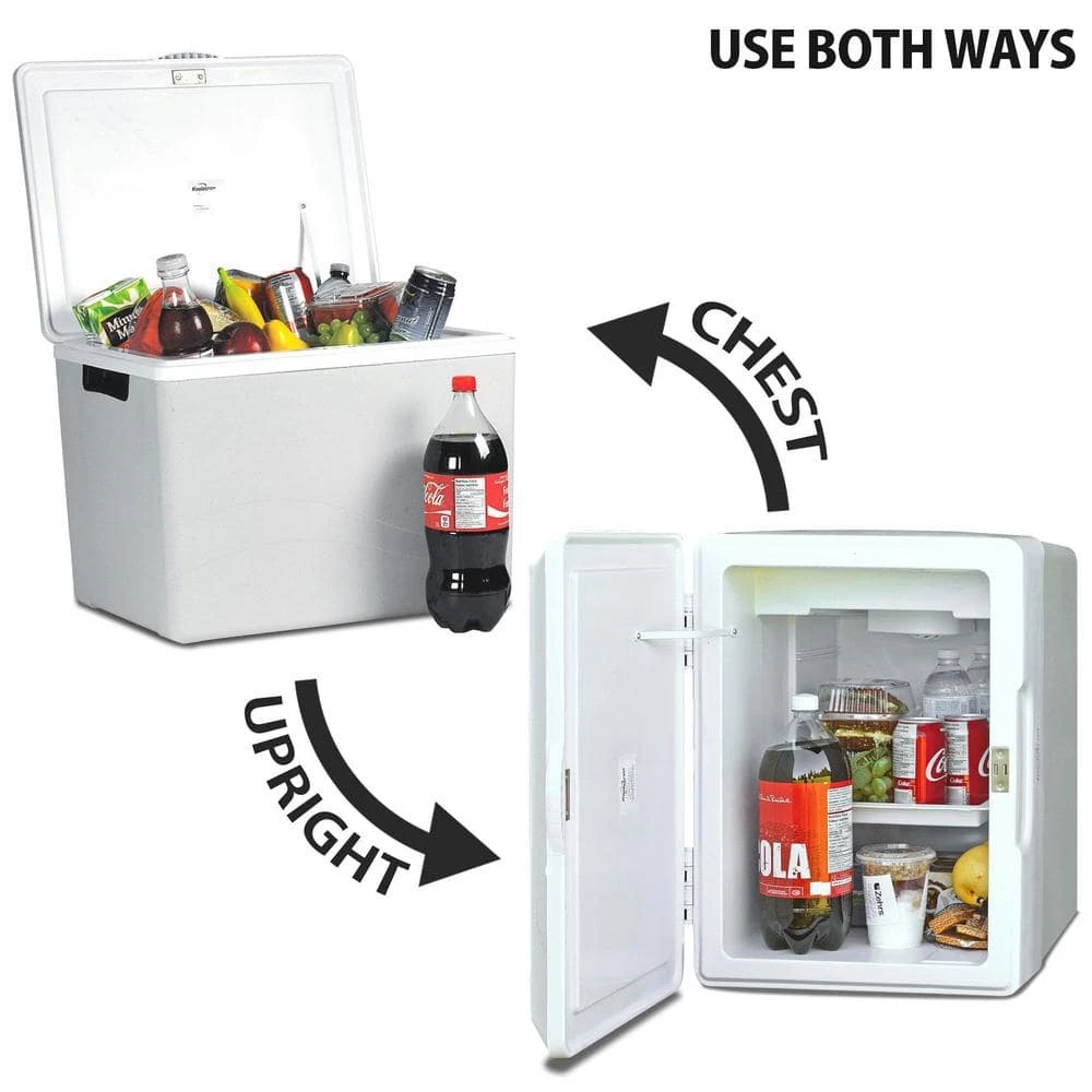 Set up as a classic ice chest or upright as a mini-fridge. The Kool Kaddy 12V cooler/warmer offers the ultimate in versatility. Plug into your vehicle for reliable cooling or warming on the go and use the AC adapter to seamlessly transfer indoors.