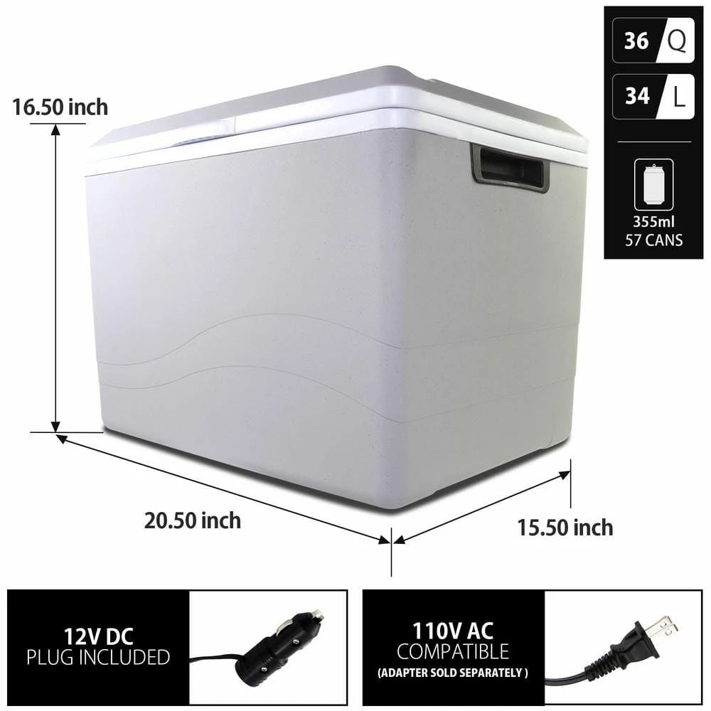 - 34L (36 qt) capacity holds up to 57 standard soda cans