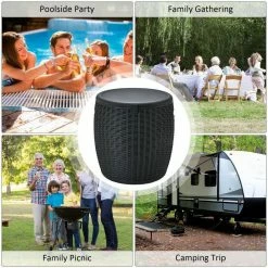 - With its imitation rattan style, the ice cooler is suitable various outdoor activities such as pool party, barbecue, family gathering, this outdoor ice bar table combines functionality with decoration, perfectly matching your patio rattan conversation set