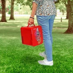 Portable Coca-Cola themed mini-fridge is the perfect desktop accessory for your home, office or dorm. Keep your drinks cool with efficient thermoelectric cooling and warming technology. The 12V adaptor means you can use it in the car too!