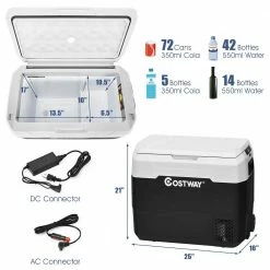 - Package includes: 1 x Car Refrigerator 1 x DC Power Cord 1 x AC Adapter 1 x Instruction