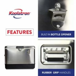 Features a rugged stainless steel exterior with a built-in bottle opener. This is the perfect accessory for day trips, boating, or BBQ. Fill it up with ice and pre-chilled drinks and snacks for maximum cooling that goes the distance.