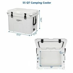 Are you looking for a high-quality cooler for your outdoor activities? This 55QT Rotomolded Camping Cooler is highly recommended to you! Made of LLDPE material, it is durable enough to work as a stool or table when fishing, picnic and camping. The rope handles provide convenience when moving, and the silicone sealing ring effectively avoids heat convection and polyurethane provides superior insulation, making it great for your trip. The silicone locking latches and sealing ring make it to be better insulation to keep food fresh. Our camping cooler is a must-have for your daily life!