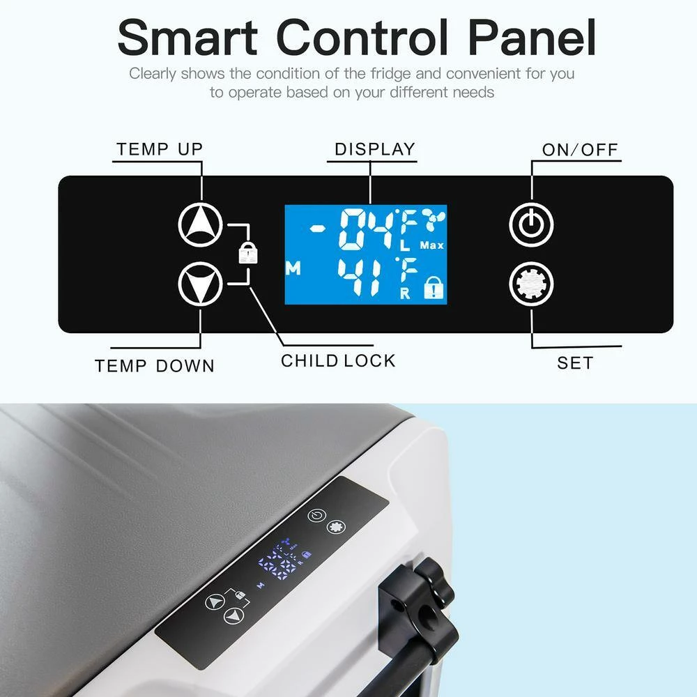 Our car fridge will be your sincere and helpful partner when you are going out for camping, traveling and picnic! For its great portability with wheels and handle, you can take it to anywhere by your car. You also don’t need to worry about its durability as it uses the material superior in thermal insulation to keep your items fresh for a long time. An LED panel equipped provides you with great convenience to check and operate. Moreover, it can even identify the condition of your car battery and help keep your car in a safe state. Its anti-shock design ca well fit your need when traveling on uneven road.