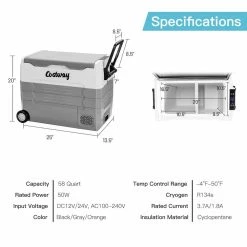 - Capacity: 58 Quart Temperature Range: -4°F to 50°F Input Voltage: DC12V/24V. AC100-240