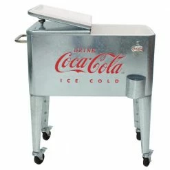 This officially licensed Ice Cold Coca-Cola cooler is a decorative solution for storing the drinks you plan to serve for your festivities. The removable double lid allows you to fill the insulated poly liner with ice and beverages when the party calls for a round of tidbits. Additionally, the interior compartment of this 60 qt. cooler has ample volume, so you can keep up with your thirsty guests. Featuring a design inspired by the iconic logo, this whimsical icebox is a union of classic charm and modern-day function. If you are serving brews in old-fashioned bottles, it comes with a built-in bottle opener and cap catcher. For an added touch of convenience, the steel bar offers a place for you to hang a towel. This retro cooler has 4 casters for easy transport and 2 of them can lock so the unit stays in place when unattended. You can easily drain the melted ice after the party’s over by pulling out the plug by its attached chain.