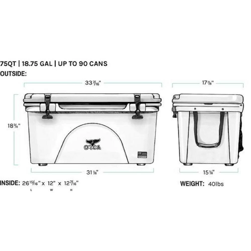 This ORCA 75 qt. cooler is highly durable and is roto-molded. The 75 qt. cooler will hold ice and keep perishables cold for up to 10-days. This cooler will hold up to 90-cans.