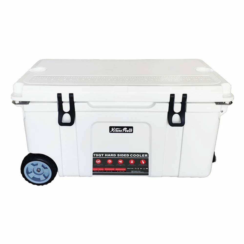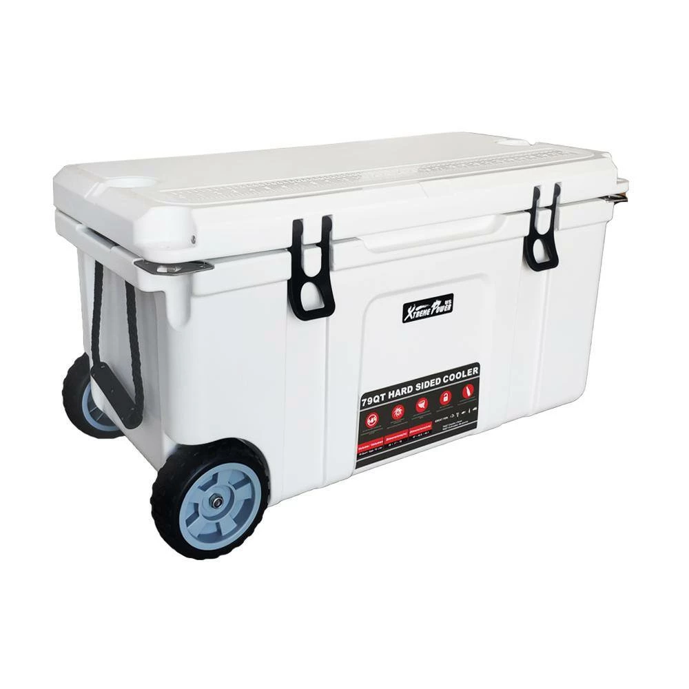 Whether you’re off on an outdoor adventure or camping with friends, you don’t want to worry about the ice in your cooler melting. The Freeze High Performance Roto Cooler features uni-body rotationally molded construction and a premium blend of thick polyurethane insulation. Ice chest is sturdy as well as user-friendly. You can put your water bottle on it while fishing. Take XtremepowerUS insulated cooler camping, roadtrips, backyard, beach, parties and much more.