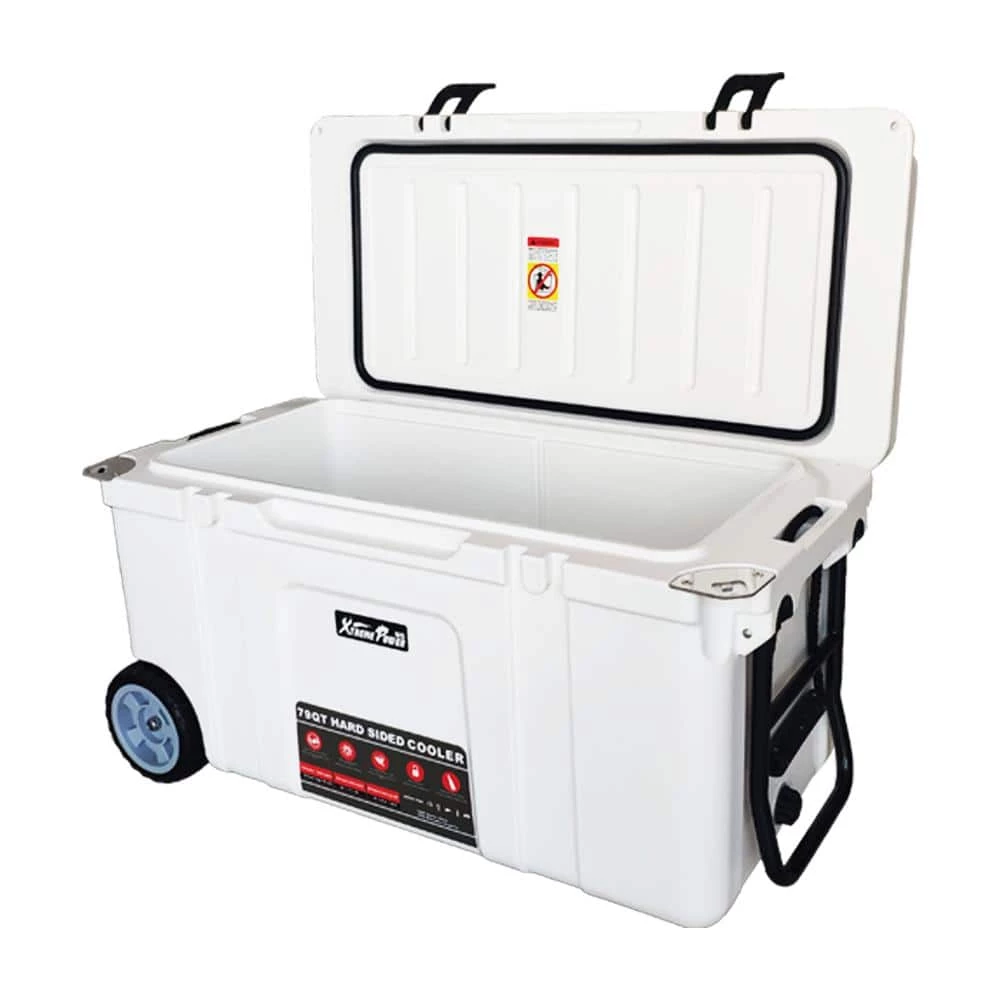 - Premium Rotor-Molded Construction – Rotomolded Construction makes it virtually indestructible; surface color is classic with natural gloss, outer material LLDPE (Anti-UV) and inner material LLDPE (Food-Grade). Insulation layer in the middle is Polyurethane material. Silicon seals mold in the lid for excellent sealing
