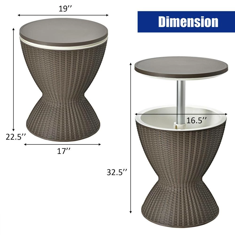 Our 8-gallon ice cooler is ideal for outdoor patio party or family picnic use. It can maintain your drinks fresh and cool for several hours when filled with ice. Featuring two adjustable heights of 22.5” and 32.5”, it can not only work as an ice bucket, but also use as a side table, perfectly meeting your different needs. And it is equipped with a lifting table lock to prevent it from falling. Besides, the drain at the bottom makes easy water draining and the drain plug design makes it easy to clean, which greatly saves your efforts. If you like it, don’t hesitate to buy one!