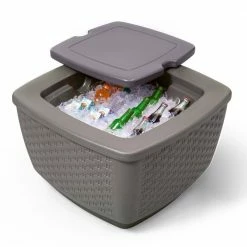 Turn your backyard into a fun warm-weather getaway! With the Step2 Just Chillin’ Patio Table & Ice Bin, you can relax in the sun with ice cold drinks at the ready. The inside of this table features a double-wall, deep-well ice bin, so you never have to go far to get another beverage! Just pour some ice in the well, fill it with your favorite seasonal drinks, and you’re ready for a perfect sunny day. The large top surface offers space to rest your drink even when removing the lid. If you’re entertaining friends and family, flip the lid over to use the gameboard!