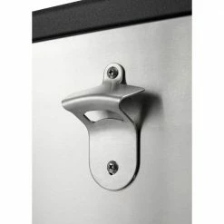 Made of high quality and durable 304 stainless steel, this cooler is perfect for any entertaining occasion. Entertain in style with an 80 Qt./20 Gal./80 aluminum can capacity. This sleek stainless steel cooler or ice cart is especially convenient with its raised design and wheels, as well as with the bottle opener and cap catcher. The bottom shelf also provides extra storage space allowing for easy refills, or anything else that needs to be carted outside. Also included is a cooler cover which is both water and UV resistant. The cover features 2 adjustable touch fastener straps to protect your cooler from the elements such as wind and rain. Perfect for indoor or outdoor use, you will never have to worry about serving warm drinks to your guests again.