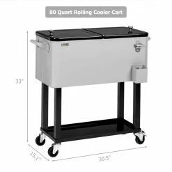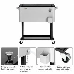 - 80 qt. cooler cart: holds up to 80 qt. (20 Gal.) 96 aluminum can, it will be a perfect tool to cool your drinks, such as beer, beverage and juicy