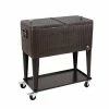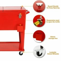 - Directional Wheels: Patio Cooler Cart equipped with 4 wheels which allow you to move it anywhere. Rotates 360 degrees for easy transportation. Two wheels with lock keep it in place.