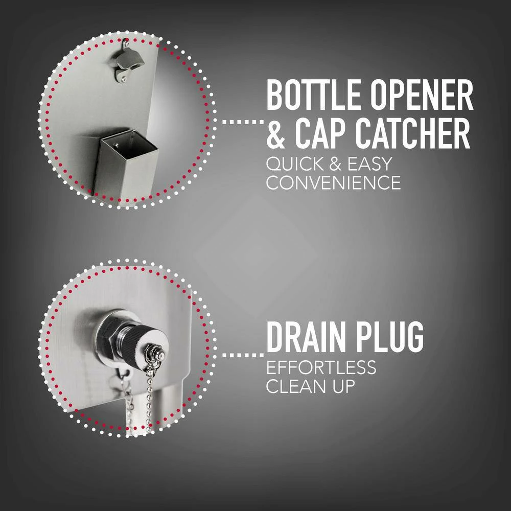 - Includes bottle opener and cap catcher