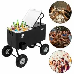 This VINGLI 80 qt Spraying Plastics Party Cooler Wagon is perfect for those outdoor summer time parties and gatherings, with 10 in. inflatable all terrain wheels, sturdy handle for better operation of either carry or pull. Built-in bottle opener, cap catch tray and drainage spout make it also suitable for outdoor picnic, party or camping, on beach or park. Adopting high quality material, it features stable, sturdy, durable and environment friendly. The intelligently designed cooler will keep beverages and food cold. Solid all welded steel construction body with 80 qt. large capacity. Don’t hesitate, it’s worth buying. Enjoy your entertainment anywhere with the Party Cooler Wagon.