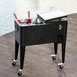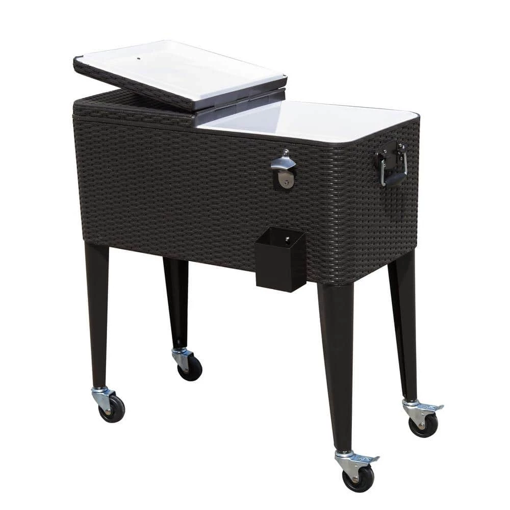 Bring the party with you wherever you go with our portable rolling cooler cart from Outsunny. Made of durable steel with a stylish colored finish, it’s the perfect companion to any outdoor gathering. This 80 quart (20 gallon) cooler has two openings so you can easily access both sides and features convenient handles on each side as well. A drainage hole located on the back lets you quickly remove excess water while a convenient bottle opener with cap catcher is attached to the front. It features four wheels which allows you to bring this cooler with you anywhere you go and then keep it in place with two locking wheels. The attached bottom shelf can be used to hold additional accessories such as mixers or cups. Get your summer started right with this versatile rolling cooler from Outsunny and turn your patio from a waste of space to the party place.