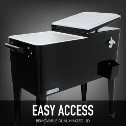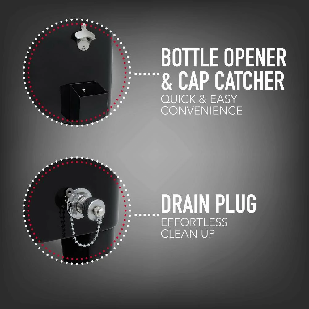 - QUICK ACCESS: Easy to open lids allows for quick drink access; includes a bottle opener and cap catcher on the side. The drain plug makes cleanup quick and easy.