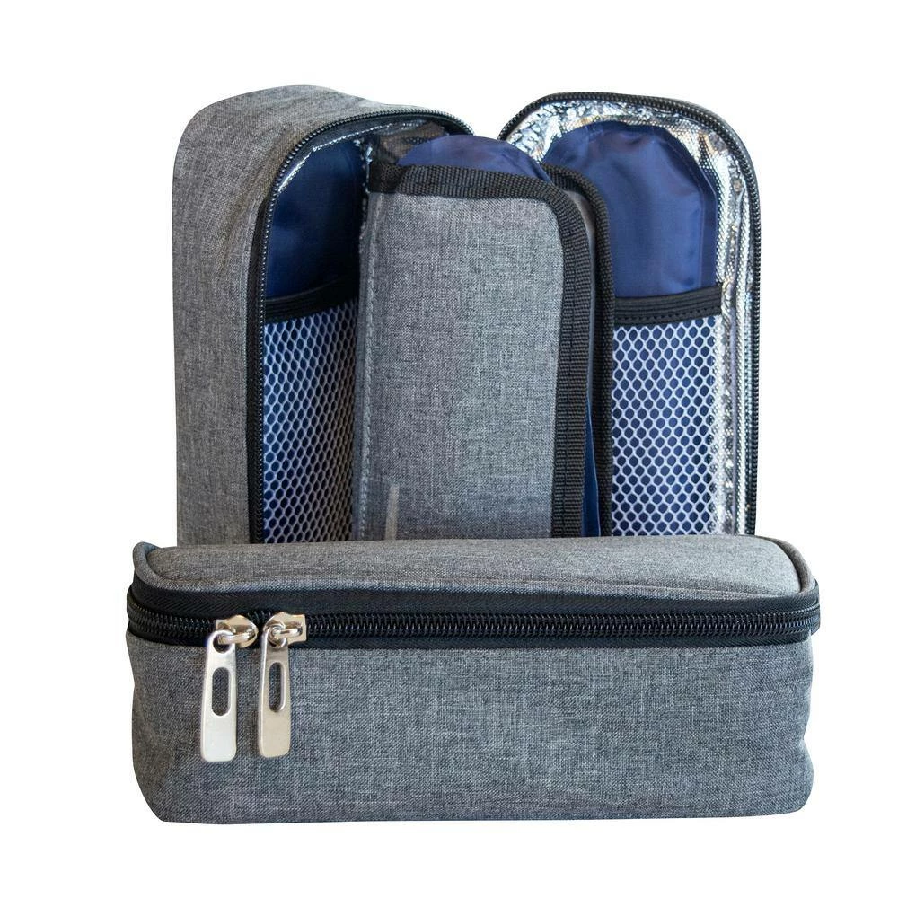 - Two complete sets included in the box – 2 zippered insulated cases, 2 folding organizer pouch and 4 reusable ice packs