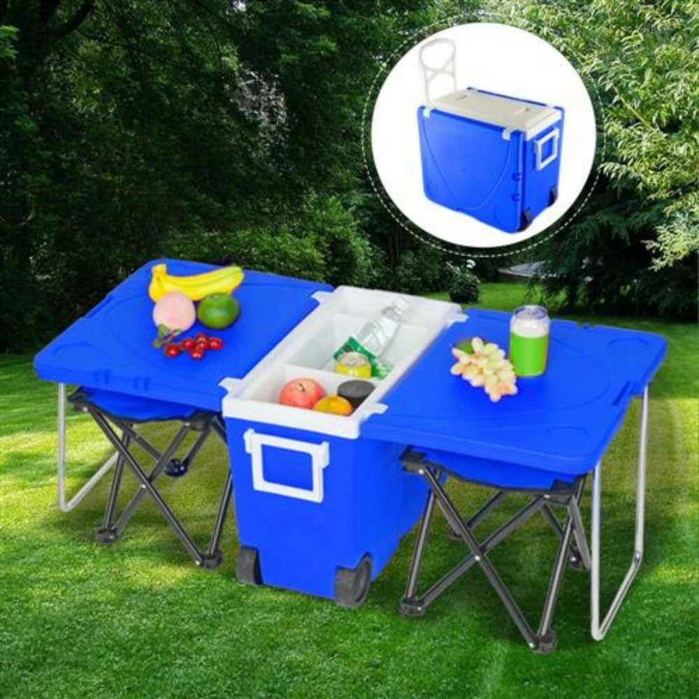 - Package Includes: 1 x Multi-function Rolling Cooler & 2 x Oxford Cloth Foldable Stools