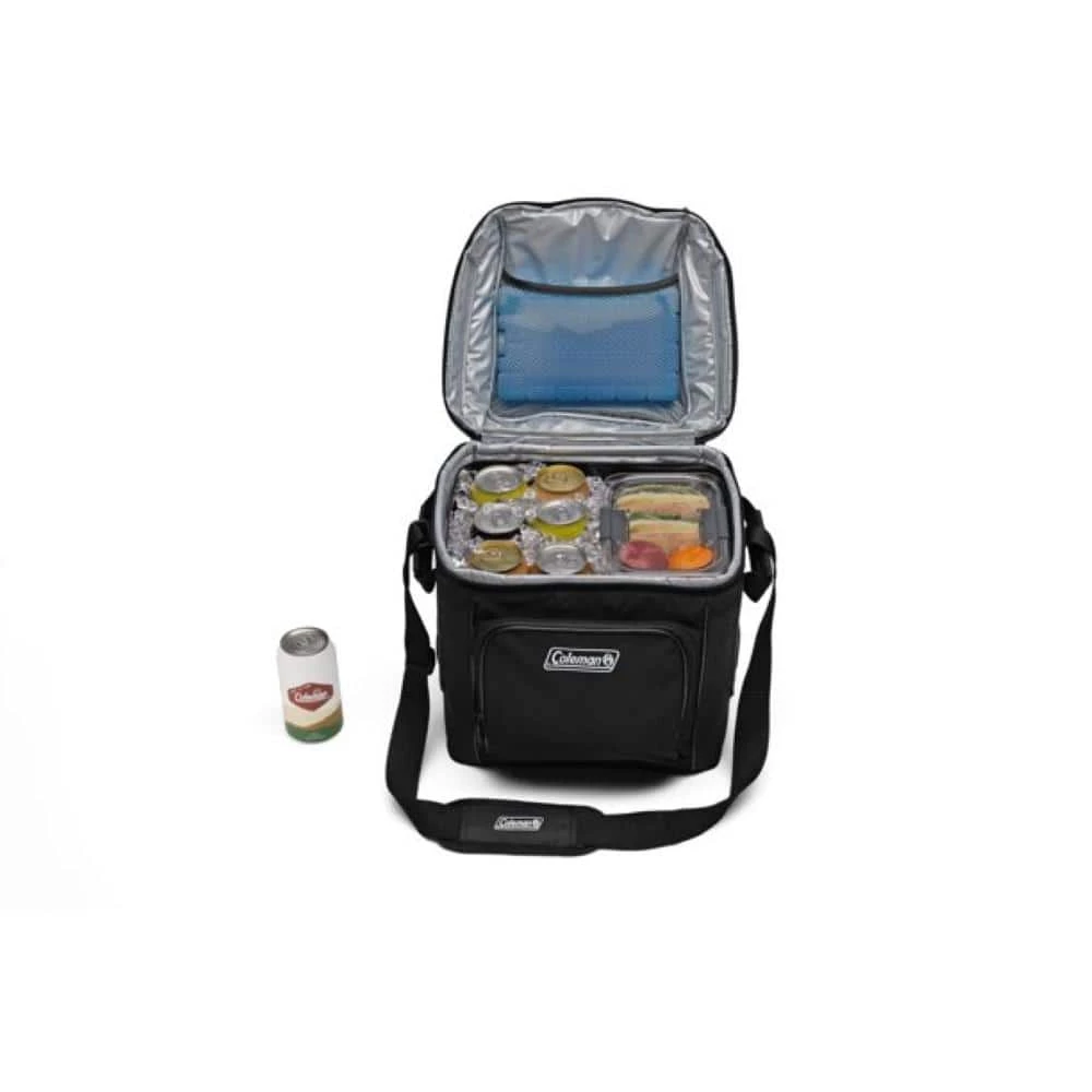 Meet the Coleman CHILLER 30 can insulate soft cooler bag, Black. Whether you’re bringing drinks to the game or keeping the fam fueled on a hike, this cooler’s easy and comfortable to carry thanks to its adjustable padded sling strap and side handles. This cooler’s exterior is made from recycled polyester fibers so you’ll help reduce your impact on the environment. Its welded seams prevent leaks for no messes while you adventure, and, if you’re craving a midday snack, its zip front and inner mesh pockets are perfect for storing protein bars, trail mix, and other extras. Once the day is over, this cooler’s antimicrobial and stain-resistant liner is removable so that cleanup is quick and easy.