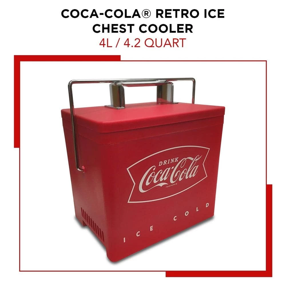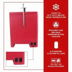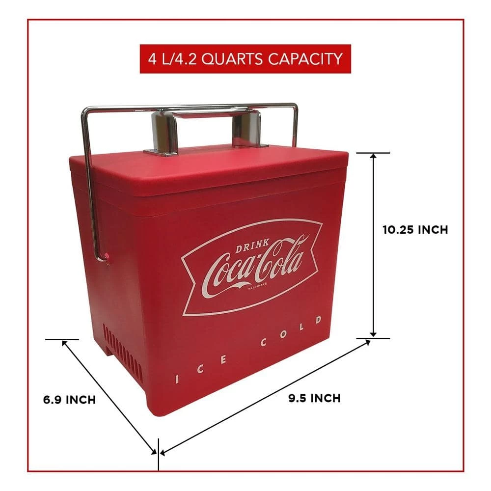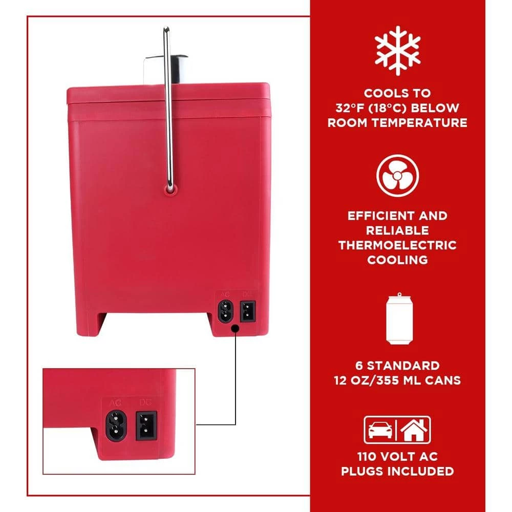 Celebrate your favorite soft drink and show off your cool vintage style! This lightweight 4 L/4.2 qt mini cooler combines retro ice chest style with modern thermoelectric cooling technology and comes with both AC and 12V DC cords for home or travel.