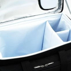 - Spacious leak-proof cooler compartment to keep food and drinks cool for hours cooler has separate sections for food and 2-bottles features a pass through opening in the lid for bottles