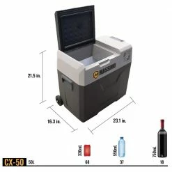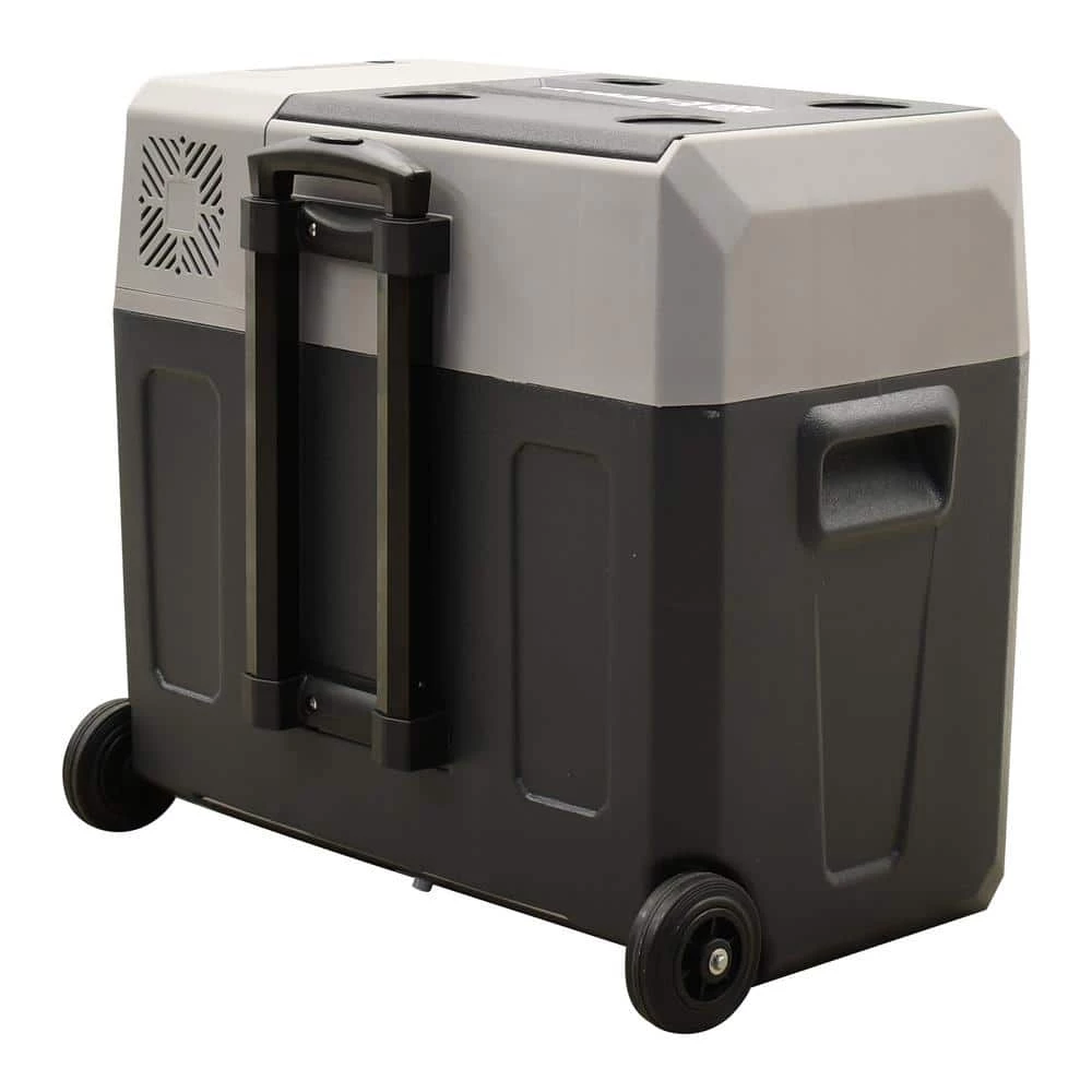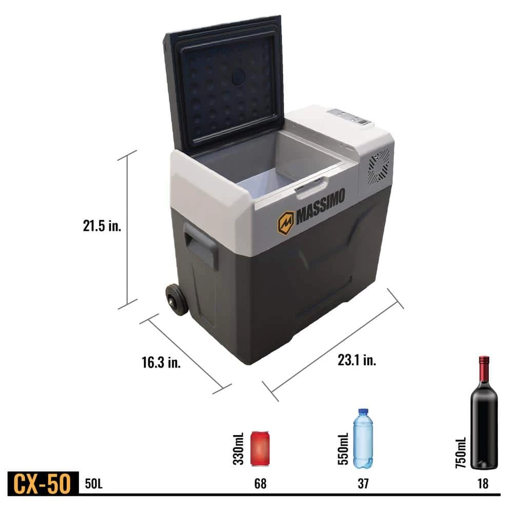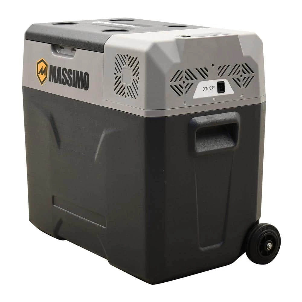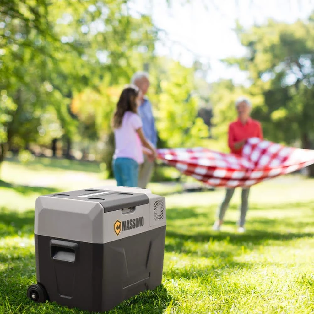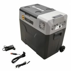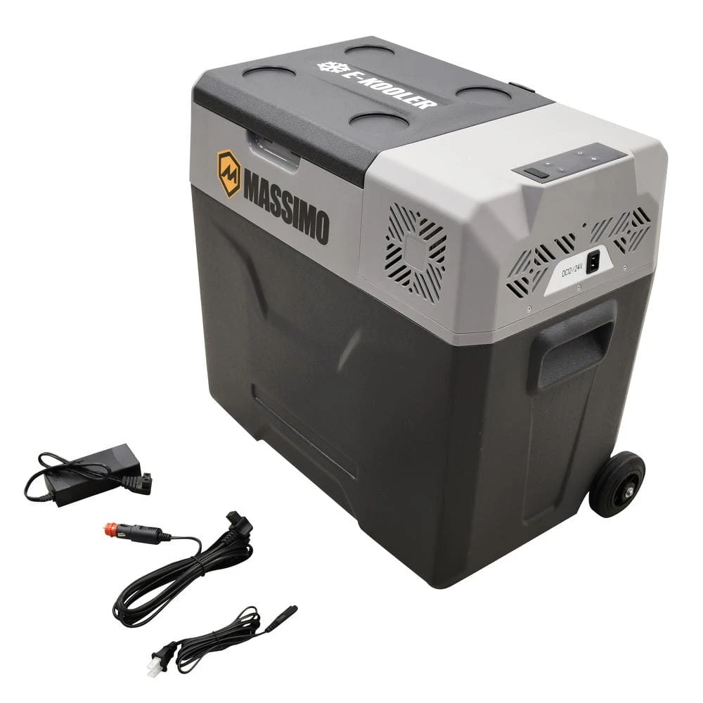 Keep food and beverages cool and fresh with the Massimo E-Kooler. This mini fridge cools to 0-degrees F while using minimal power. To adjust temperature settings quickly, it offers a digital display. A telescoping travel handle and rolling wheels make it easy to move.