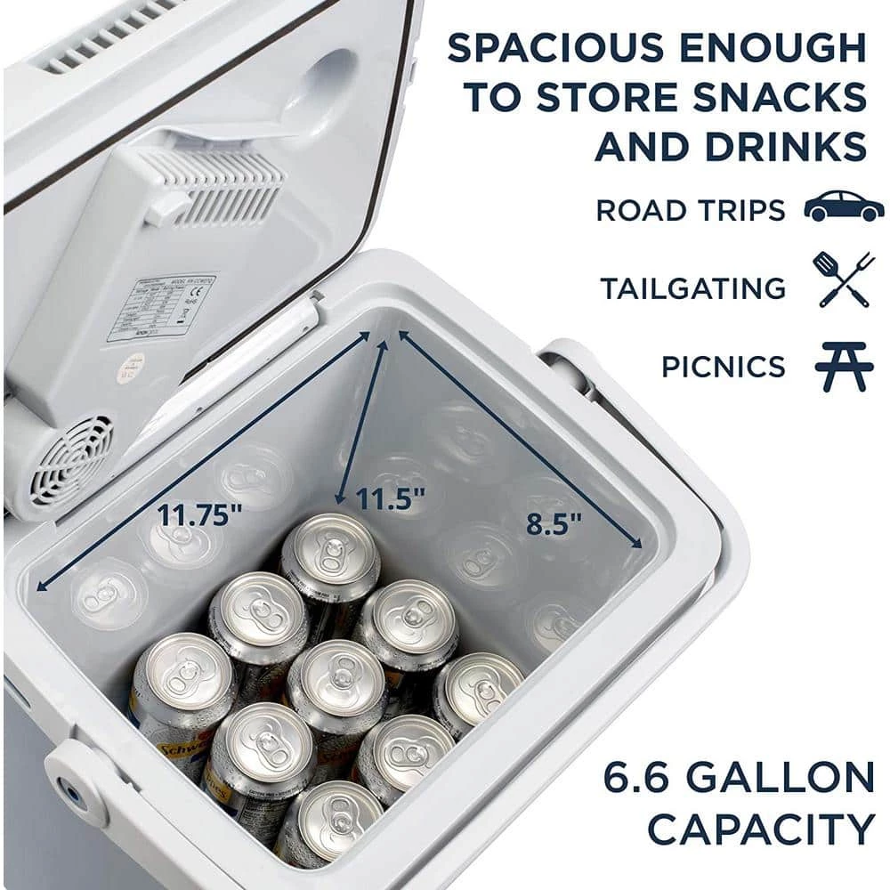 With this 2-in-1 travel cooler from Ivation there will be no more melted ice or lukewarm lunches, this space-saving portable refrigerator, refrigerates up to 6.3 gallons of liquid refreshment via simple wall or car outlet. Flip the switch to keep coffee, tea, pastas, casseroles, and other hot food warm for the duration of your journey with this thermoelectric cooler & warmer. This portable cooler is an insulating essential! Add an Ivation this camping cooler & warmer to your cart today!
