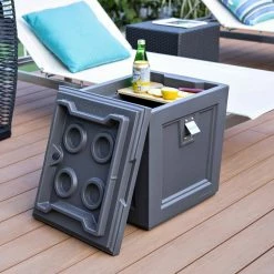 - Included Components: This patio cooler doubles as a stylish side table- it includes a bamboo cutting board, built-in stainless steel bottle opener and a reversible lid with four built-in cup holders.