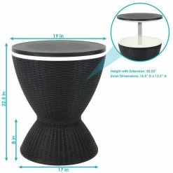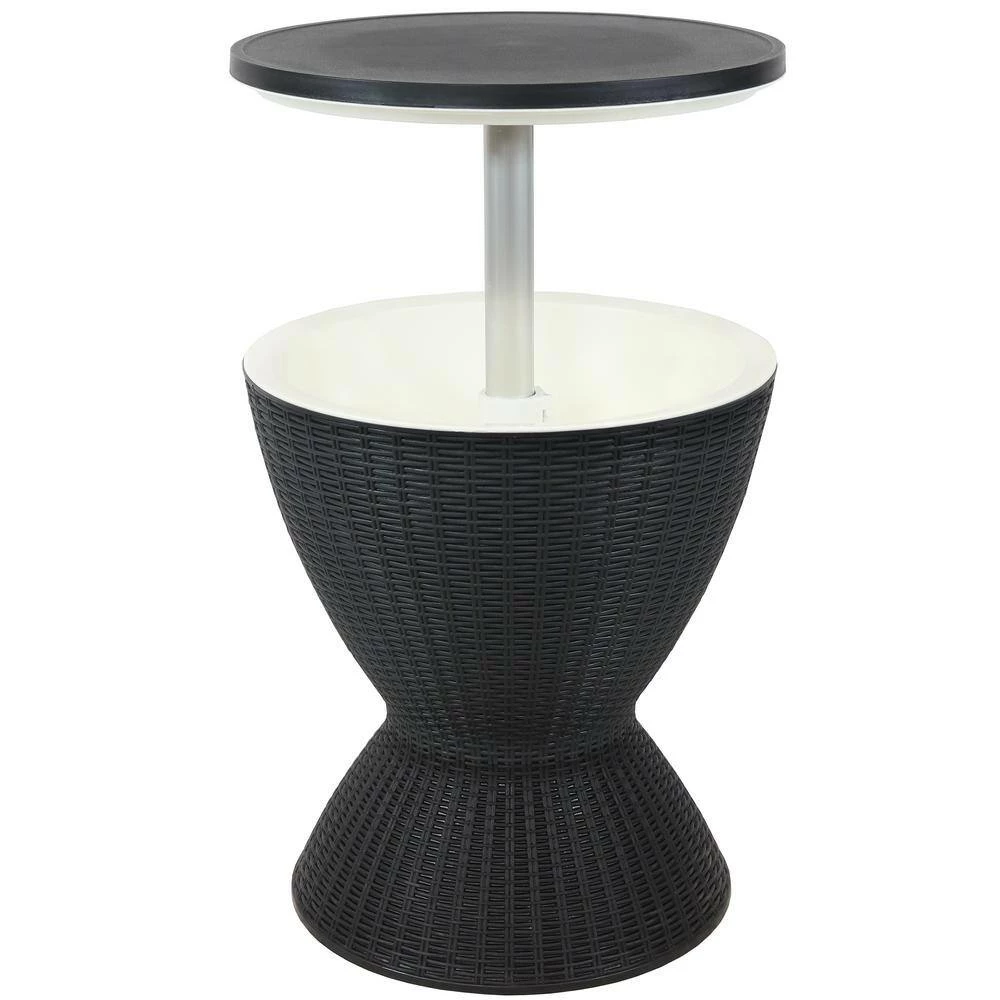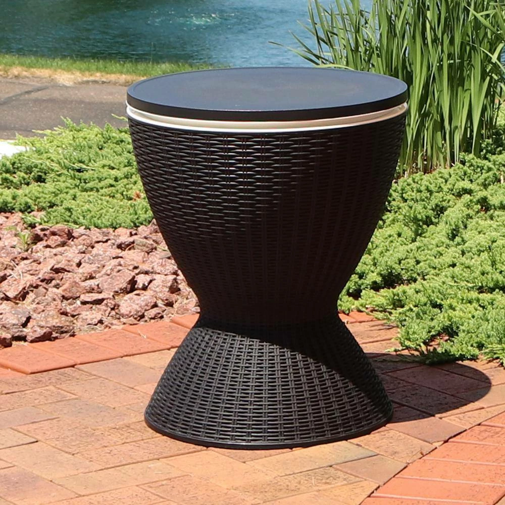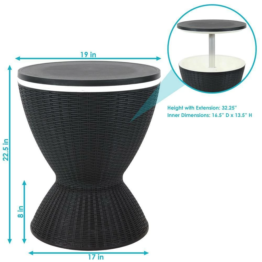 - HEIGHT-ADJUSTABLE PATIO TABLE AND COOLER: The outdoor drink cooler measures 19″ in diameter and the tabletop is height-adjustable from 22.75″ to 32.25″ H. The patio cooler weighs 11.4 lbs and has a weight capacity of 165 lbs. The inner dimensions are 16.5″ in diameter at the top (7.5″ in diameter at the bottom) x 13.5″ H.