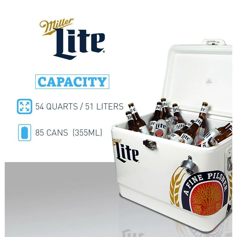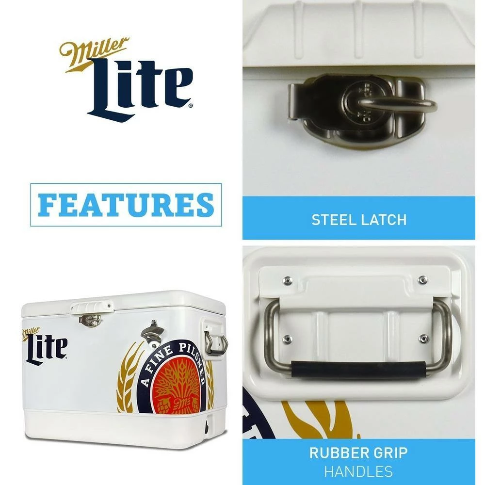 - Classic ice chest design with licensed Miller Lite graphics