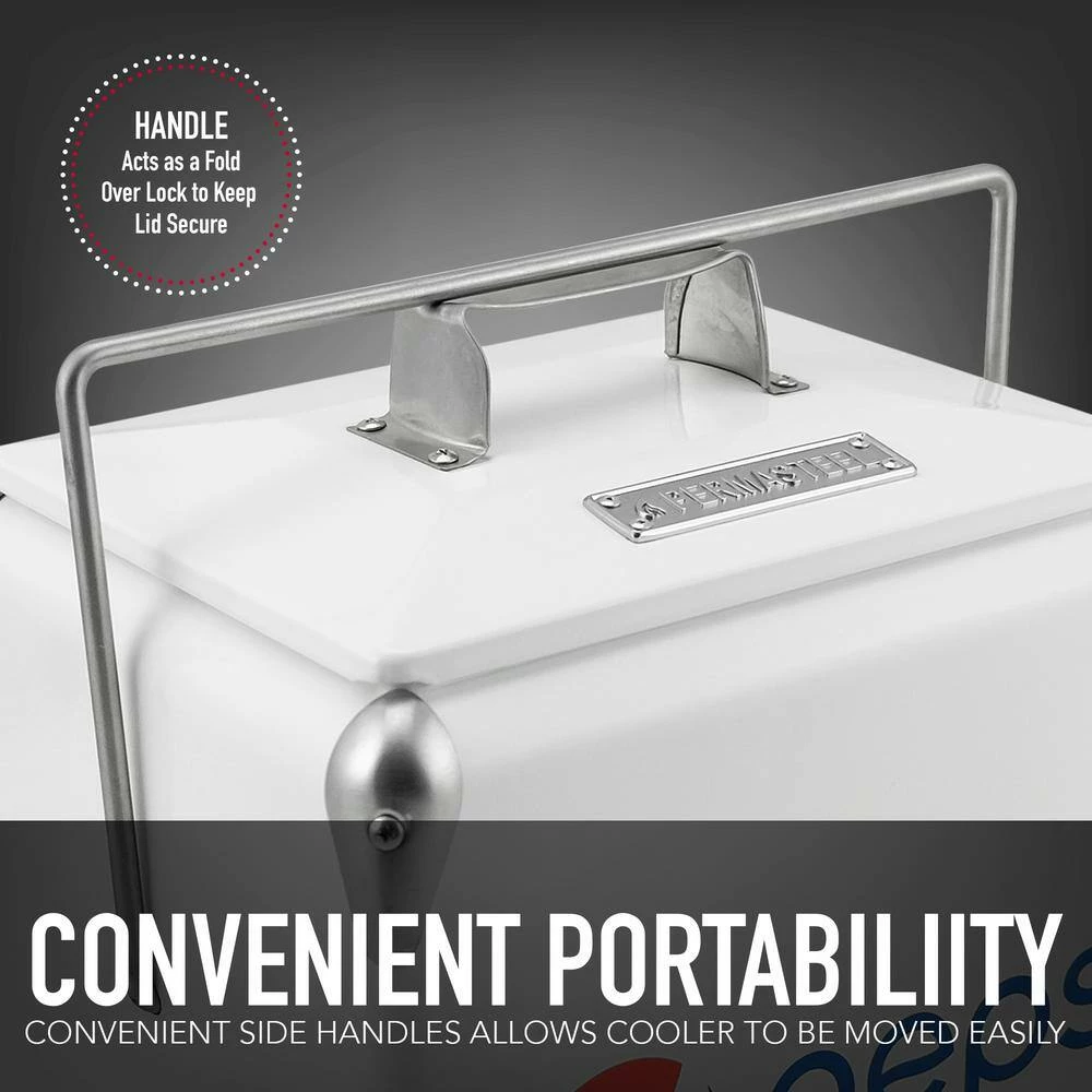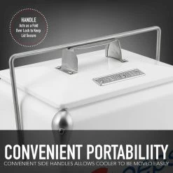 - CONVENIENT PORTABILIITY: A convenient single handle allows cooler to be moved easily; The handle also acts as a fold over lock to keep lid secure.
