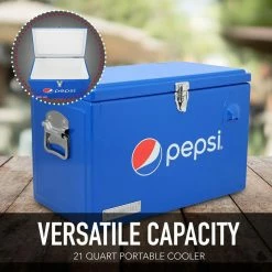 This essential 21-quart portable handheld picnic cooler, with a built in bottle opener, refreshes food and beverages for those on the go. Road trips, picnics or simply entertaining guest are only a few ways to use and enjoy this cooler. The cooler handle is uniquely designed to make it easy to carry.